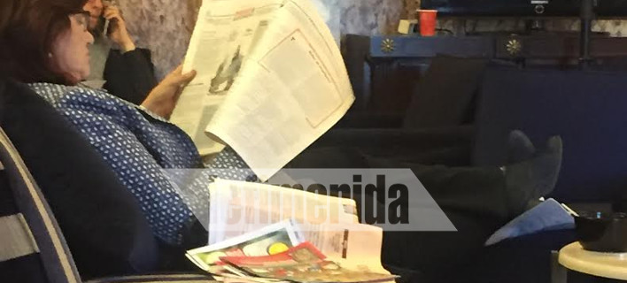 Αμφότερες βρέθηκαν στο εντευκτήριο της Βουλής, έπιασαν από έναν καναπέ και προσπάθησαν να βολευτούν απλώνοντας τα πόδια τους στους καναπέδες, με την μεν κυρία Φωτίου να διαβάζει την εφημερίδα της και τη δε κυρία Αναγνωστοπούλου να παίζει με το κινητό της.
