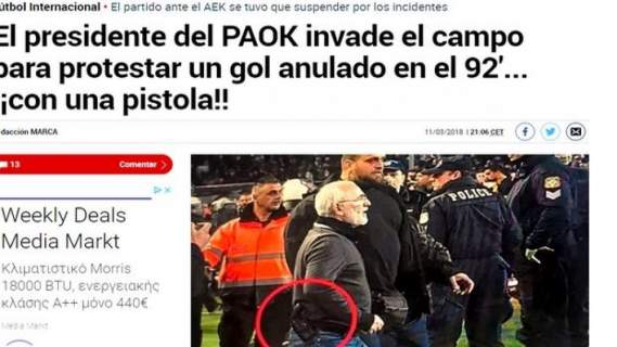 Η έγκυρη και κορυφαία ισπανική εφημερίδα «Marca» είχε πρώτο θέμα και εν συνεχεία δεύτερο στην ιστοσελίδα της το «ντου» του Ιβάν Σαββίδη και στέκεται στο γεγονός πως ο μεγαλομέτοχος του ΠΑΟΚ είχε όπλο.
