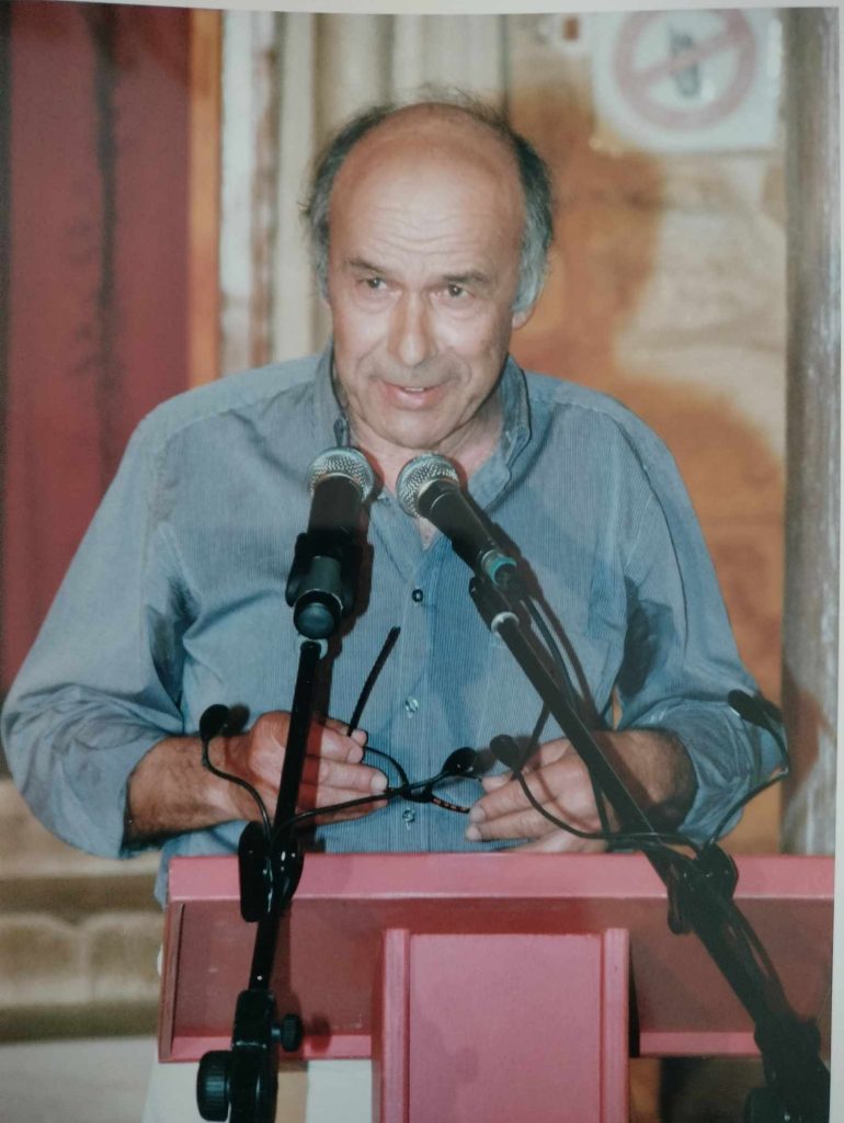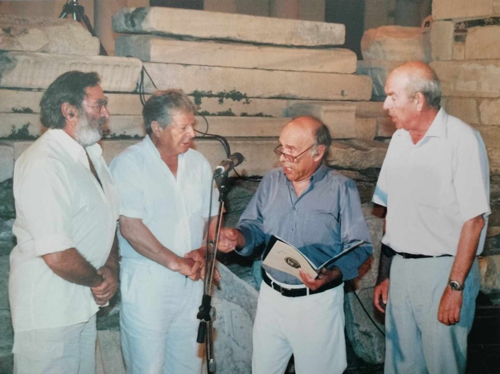 Το 1984 παρουσίασε το «Πνευματικό Εμβατήριο» του Μ. Θεοδωράκη στην Μύκονο παρουσία και πάλι του ίδιου του Μ. Θεοδωράκη.