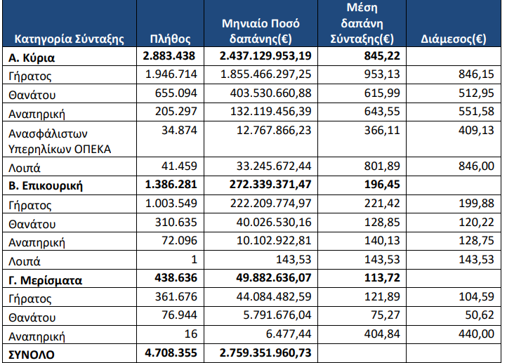 O αριθμός των συνταξιούχων της χώρας ανέρχεται σε 2.517.412 και το μηνιαίο ποσό εισοδήματος με την προϊσχύουσα μεθοδολογία σε