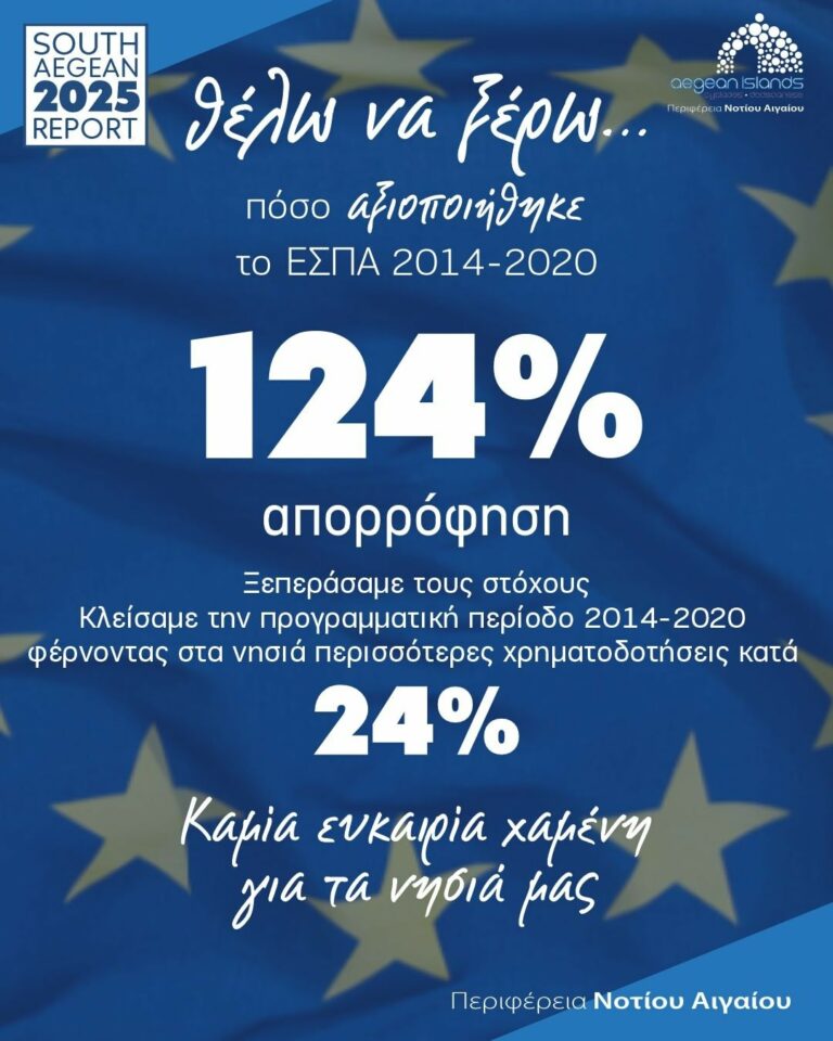Στο 124% κλείσαμε το ΕΣΠΑ 2014-2020 και αυτό γιατί δεν θέλουμε να πάει χαμένη καμία ευκαιρία για τα νησιά μας.