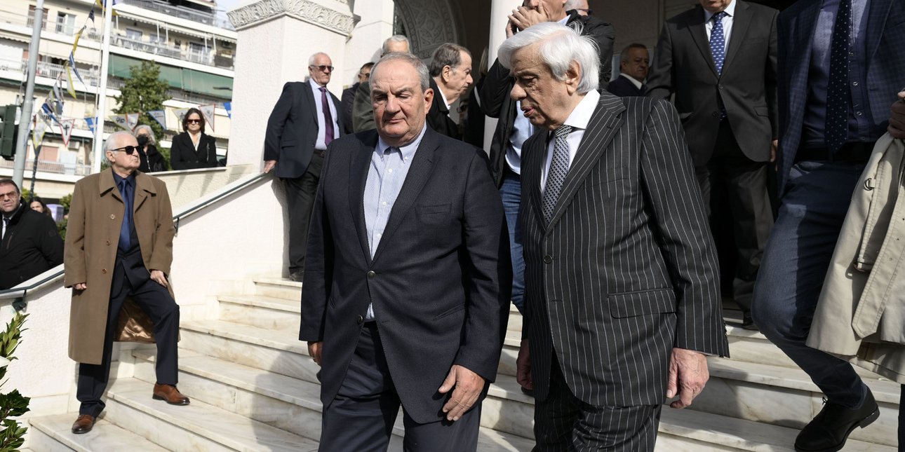 Παυλόπουλος και Καραμανλής στην εξόδιο ακολουθία του πρώην πρόεδρου του ΔΣΑ, Γιάννη Αδαμόπουλου