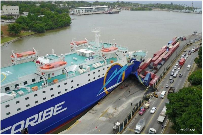 Στην προβλήτα του λιμένα του Santo Domingo προσέκρουσε το Ε/Γ-Ο/Γ ΚΥΔΩΝ, σκαρί που είχαμε συνηθίσει να βλέπουμε με τα χρώματα της ΑΝΕΚ Lines.